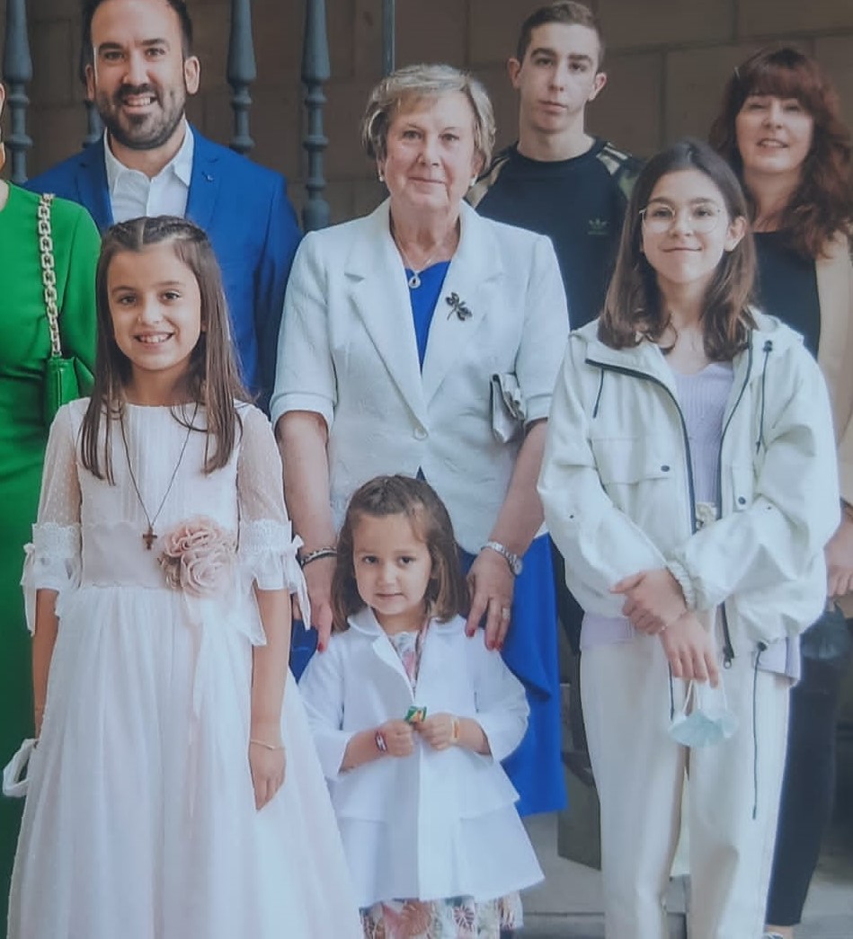 Eliminación del codo de Nerea, la novia, y de parte de su vestido. Reconstrucción del hombro de Maite, parte del vestido suyo y de la virgen.
